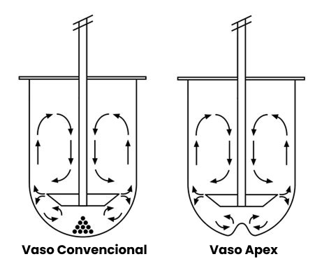El diseño Apex no nació para reemplazar al vaso estándar, sino para resolver las limitaciones hidrodinámicas que éste no podía superar. Por eso, su aplicación no es universal, sino estratégica: se emplea cuando la geometría tradicional deja de ser suficientemente reproducible o cuando las características de la formulación exigen mayor homogeneidad de flujo.
