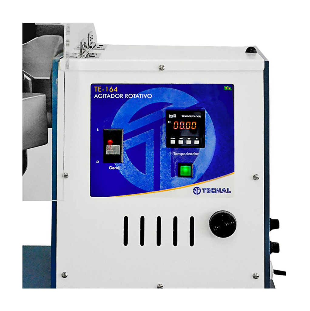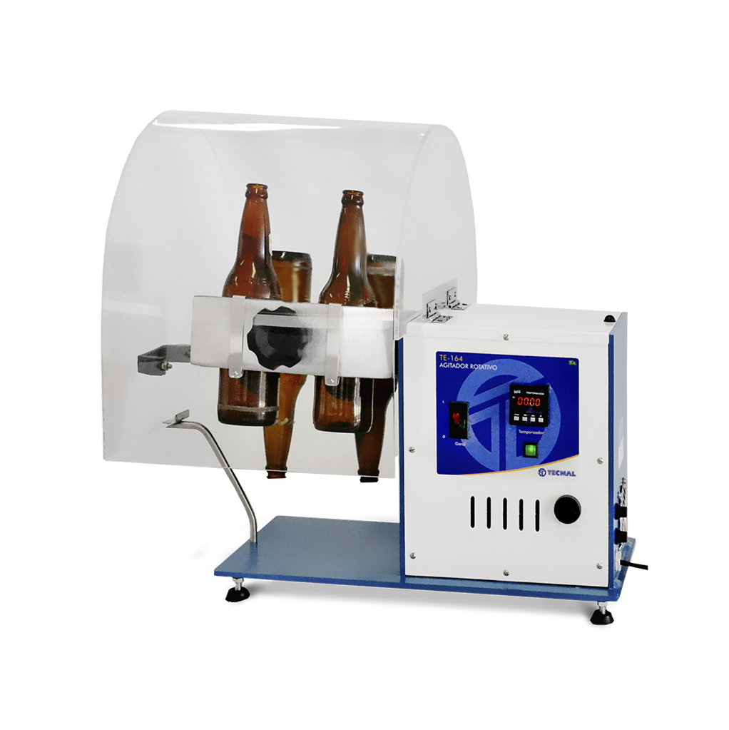 El TE‑164 de Tecnal es un agitador rotativo para botellas y latas, con rotación fija de 50 rpm ±5 rpm, temporizador digital, galería de acero inoxidable ajustable a 1 000 mL, 600 mL y latas, protegido por tapa acrílica. Compacto (700×470×570 mm, 20 kg), con motor de 67 W, alimentación 220 V/127 V y accesorios incluidos. Ideal para preparación de muestras y medición de oxígeno head‑space.