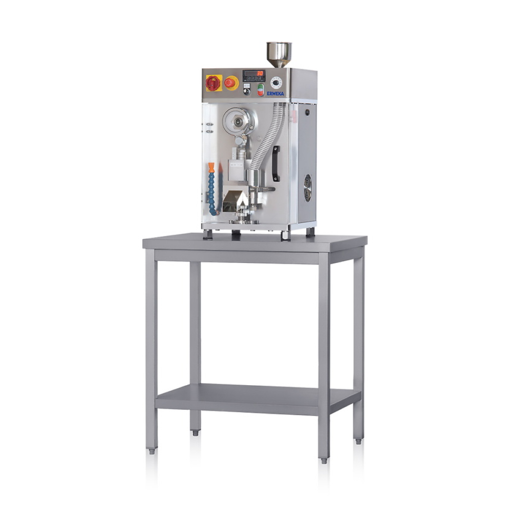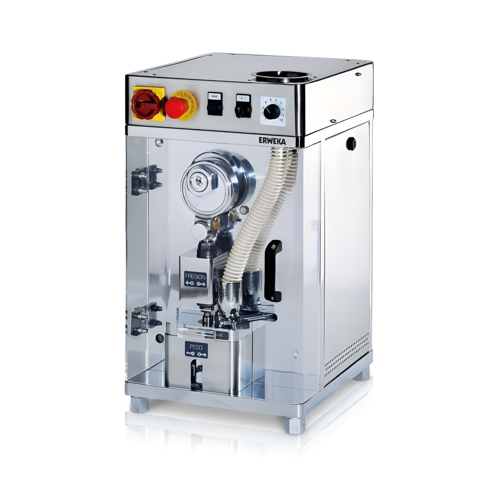 La EP-1 de ERWEKA es una prensa de comprimidos excéntrica de un solo punzón, diseñada para aplicaciones de I+D y producción de lotes pequeños. Permite fabricar tabletas y formas especiales de hasta 20 mm de diámetro, con fuerza de compresión de hasta 3 toneladas y profundidad de llenado ajustable. Su velocidad de operación es variable y alcanza un rendimiento máximo de 4 000 tabletas por hora.