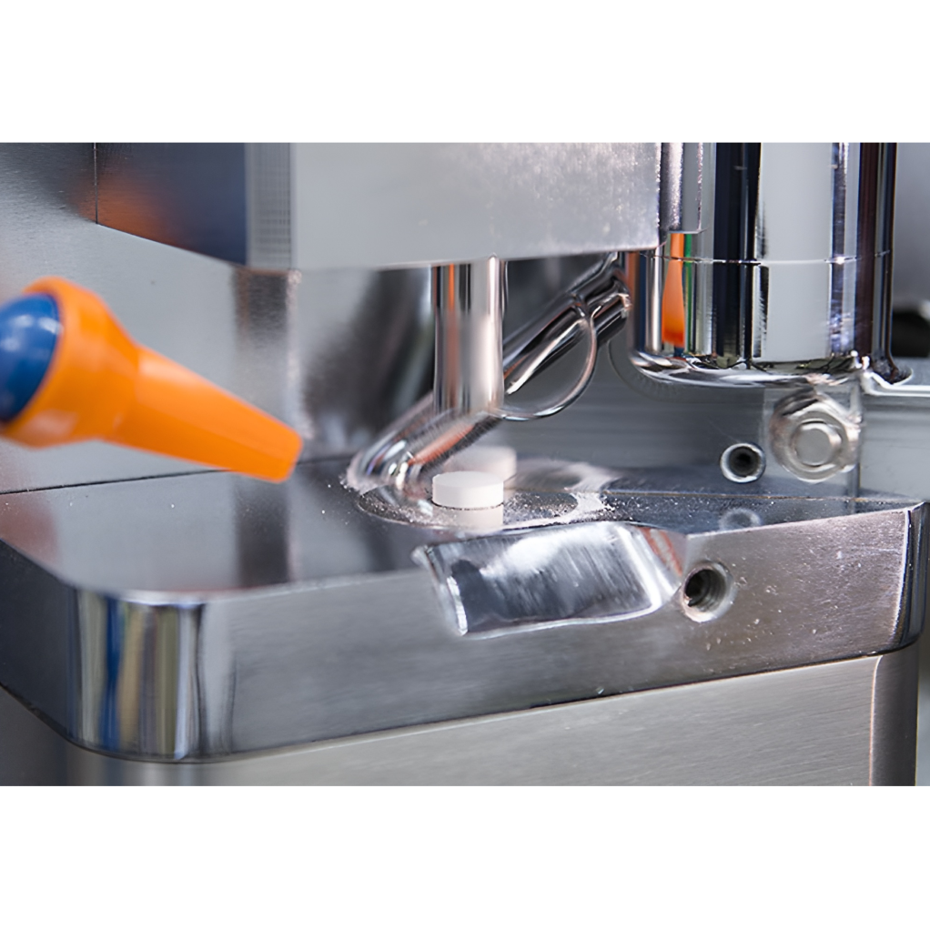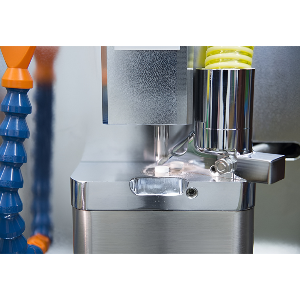 La prensa EP-1 está concebida como solución compacta de escritorio para desarrollo de formulaciones y pruebas piloto. Su diseño excéntrico de punzón único automatiza los pasos de llenado del dado, compresión del material y eyección continua del comprimido.