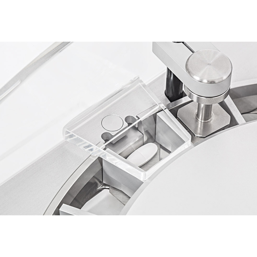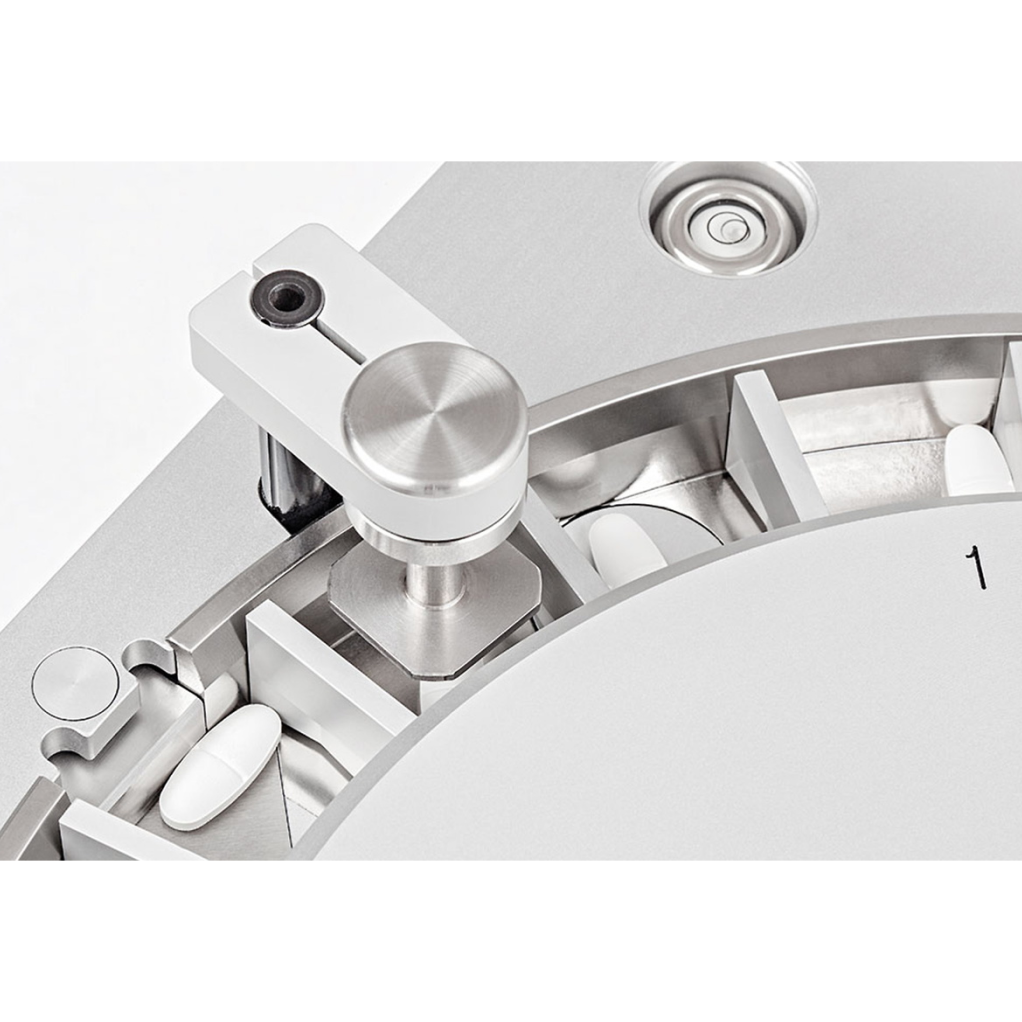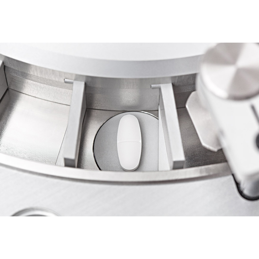 - Alineación automática de comprimidos alargados con el Oblong Slider®, mejorando la reproducibilidad en pruebas de tabletas no redondas.