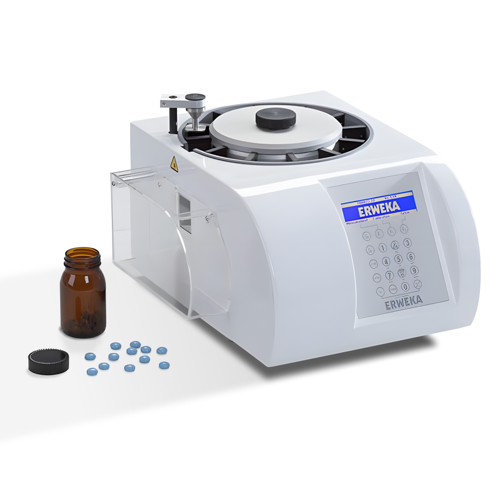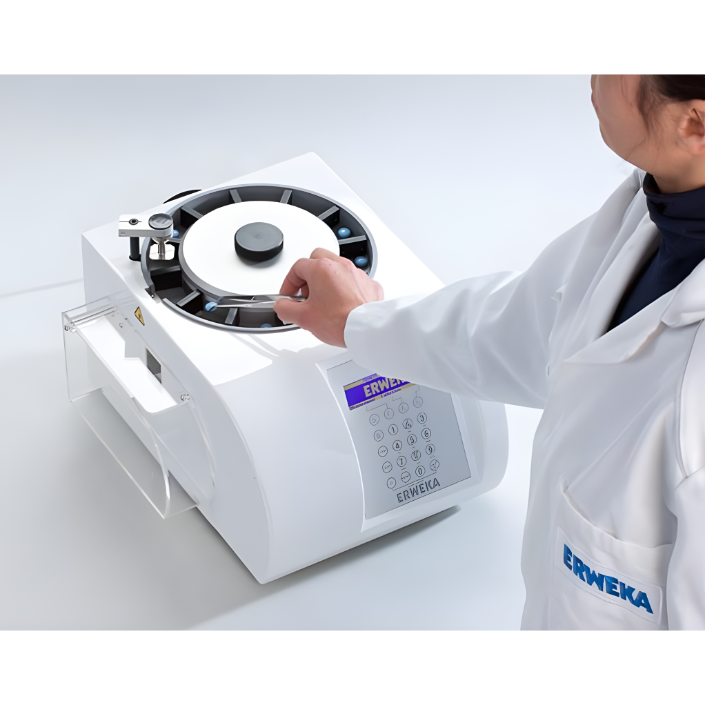 El ERWEKA TBH 425 es un tester de dureza de tabletas semiautomático diseñado para procesar hasta 10 muestras en forma sucesiva mediante un cargador tipo estrella. Evalúa dureza (fuerza de rotura) y, dependiendo de la versión, también puede medir diámetro, longitud o grosor. Integra funciones digitales, memoria de métodos y conectividad LAN/USB.