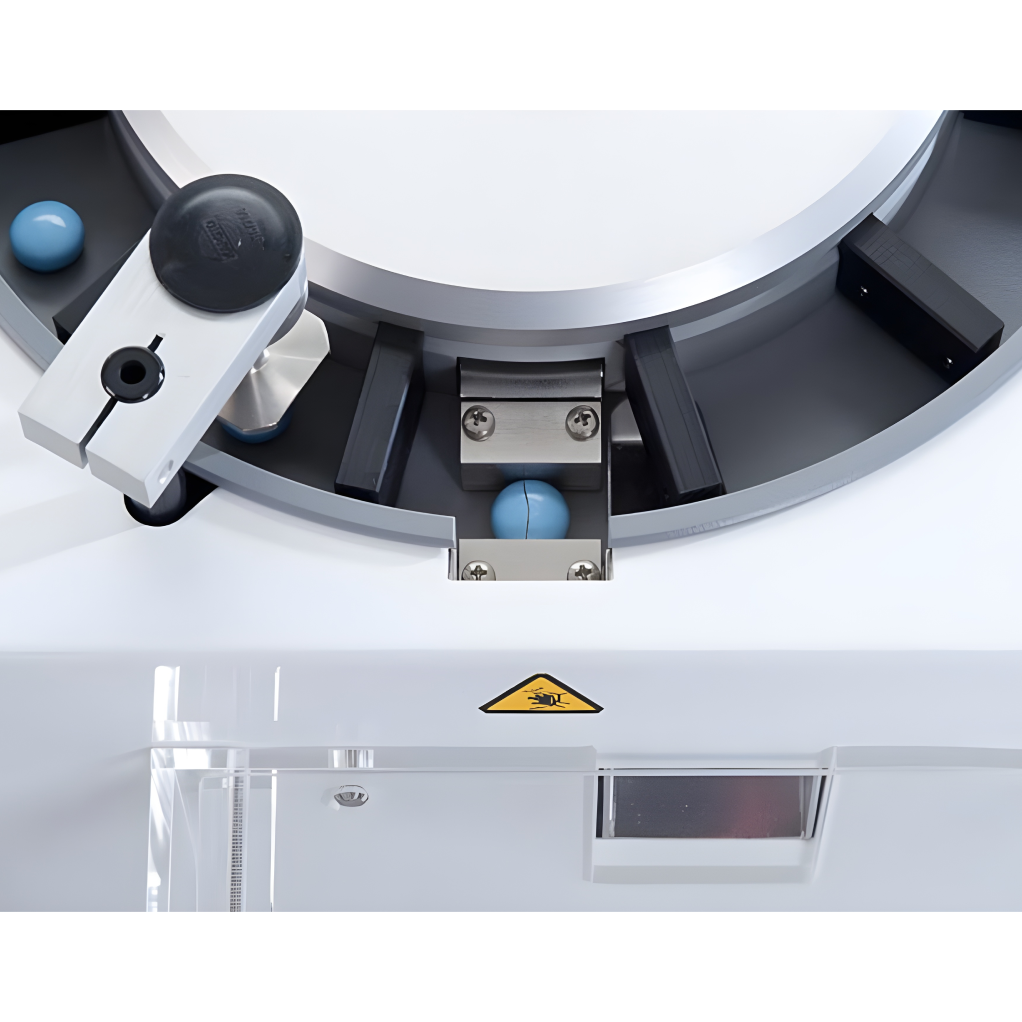 Las muestras se colocan en un alimentador estrellado (star-shaped magazine) de 10 posiciones, que las transporta automáticamente a la estación de prueba. Dependiendo del modelo, se puede extender el análisis para medir diámetro/longitud (“D”), grosor (“TD”) o incluso peso (“WTD”) con una balanza externa integrada.